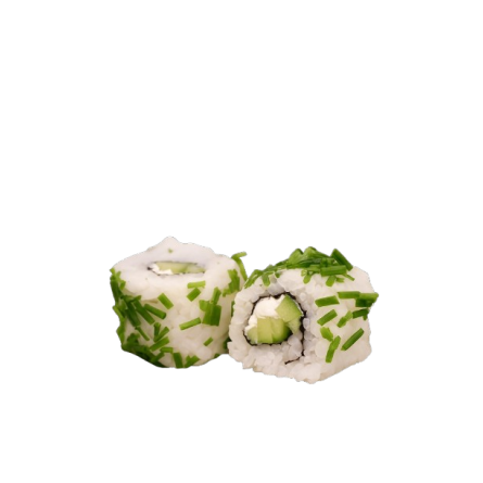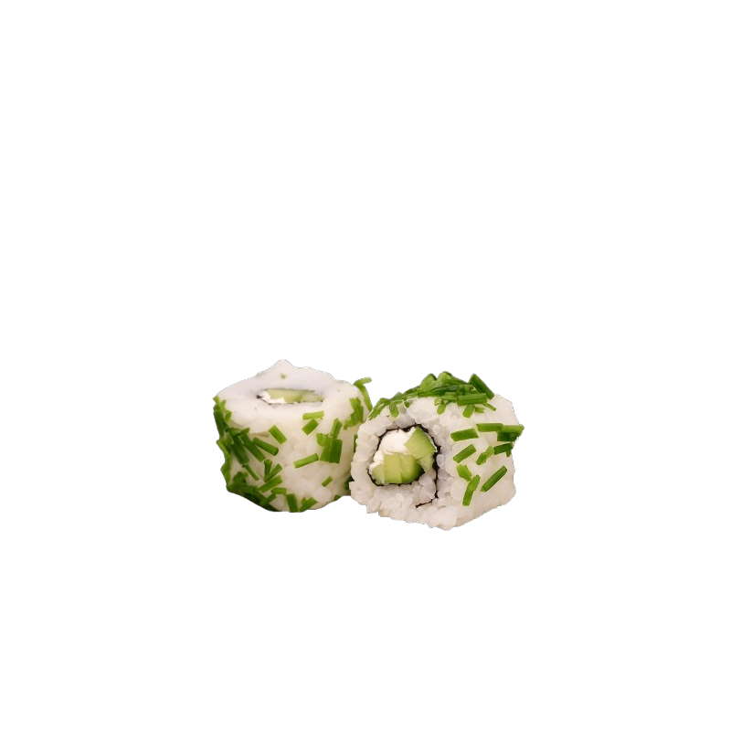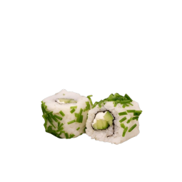 6 pièces California Roll recouvert de ciboulette garni de concombre et fromage mousseux au sel de Guérande