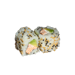 6pieces Maki algue (Nori) avocat, cheese, oignons frits, entourés de saumon