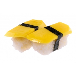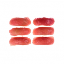 6 pieces Maki entouré d'une fine feuille de Soja rose, Jaune ou Verte et garnit de Thon et d'Avocat
